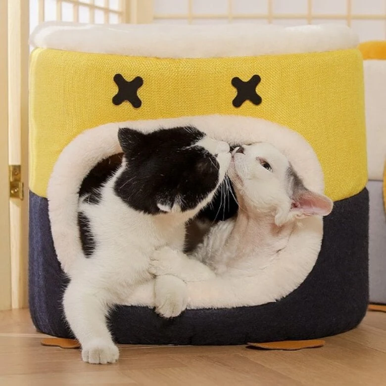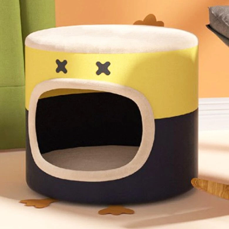 Nuestra cama novedosa para mascotas tiene un cojín de cama extraíble y lavable, se puede montar o desmontar fácilmente para lavar a mano o viajar. La almohada para gatos y perros es fácil de limpiar y lavar. También la cama para gatos se puede utilizar como caseta para gatos con calefacción para gatos de interior y como cama para perros en el interior.