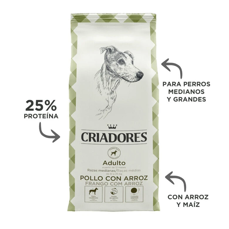 El pienso para perros Criadores Mantenimiento es un alimento 100% natural elaborado con una serie de ingredientes de alta calidad, seleccionados con mucho mimo para dar respuesta a las necesidades nutricionales de razas adultas medianas (10-25 kg).