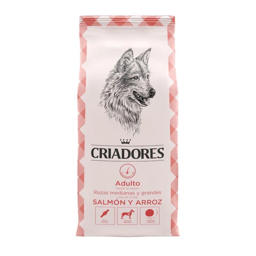 Criadores elabora este pienso para perros con un 26% de proteína de salmón, rico en omega 3, vitaminas A, D, E y K para garantizar una alimentación completa a tu mascota. Y, además, con una textura que ayuda a mantener los dientes limpios… ¡Y un delicioso sabor a salmón!