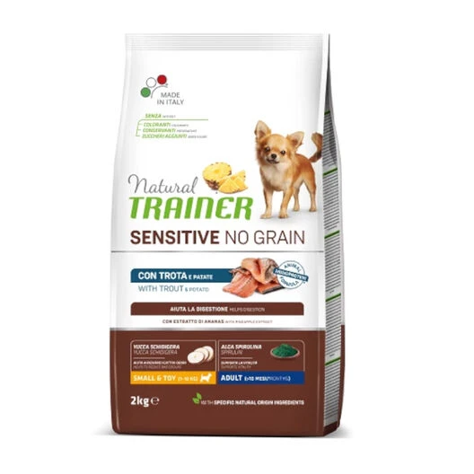 ¡Tu mascota se sentirá siempre llena de vida y con mucha energía con el pienso Natural Trainer Sensitive No Grain con sabor a trucha y patatas!