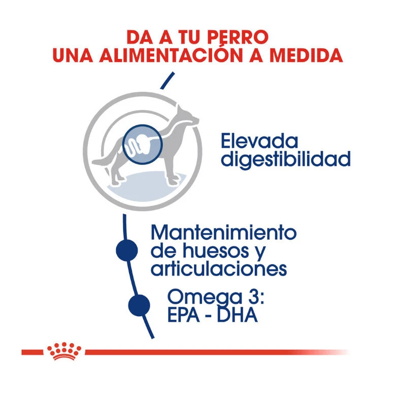 Royal Canin Maxi Adult es el alimento indicado para aquellos perros que en edad adulta alcanzan más de 25 kg gracias a su receta, creada especialmente para mantener su organismo en un estado óptimo.