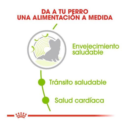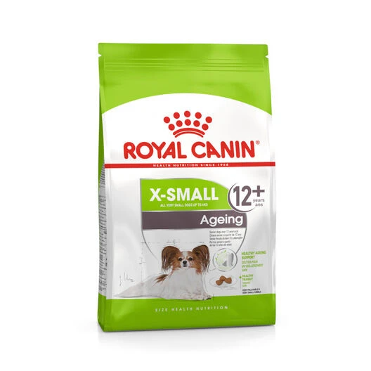 El pienso para perros Royal Canin X-Small Ageing 12+ es idóneo para cubrir todas las necesidades nutricionales de adultos de razas mini (hasta 4 kg), mayores de 12 años. A esta edad, tu mascota necesita nutrientes esenciales, vitaminas y antioxidantes que le ayuden a mantenerse sano y a retrasar los efectos del envejecimiento.